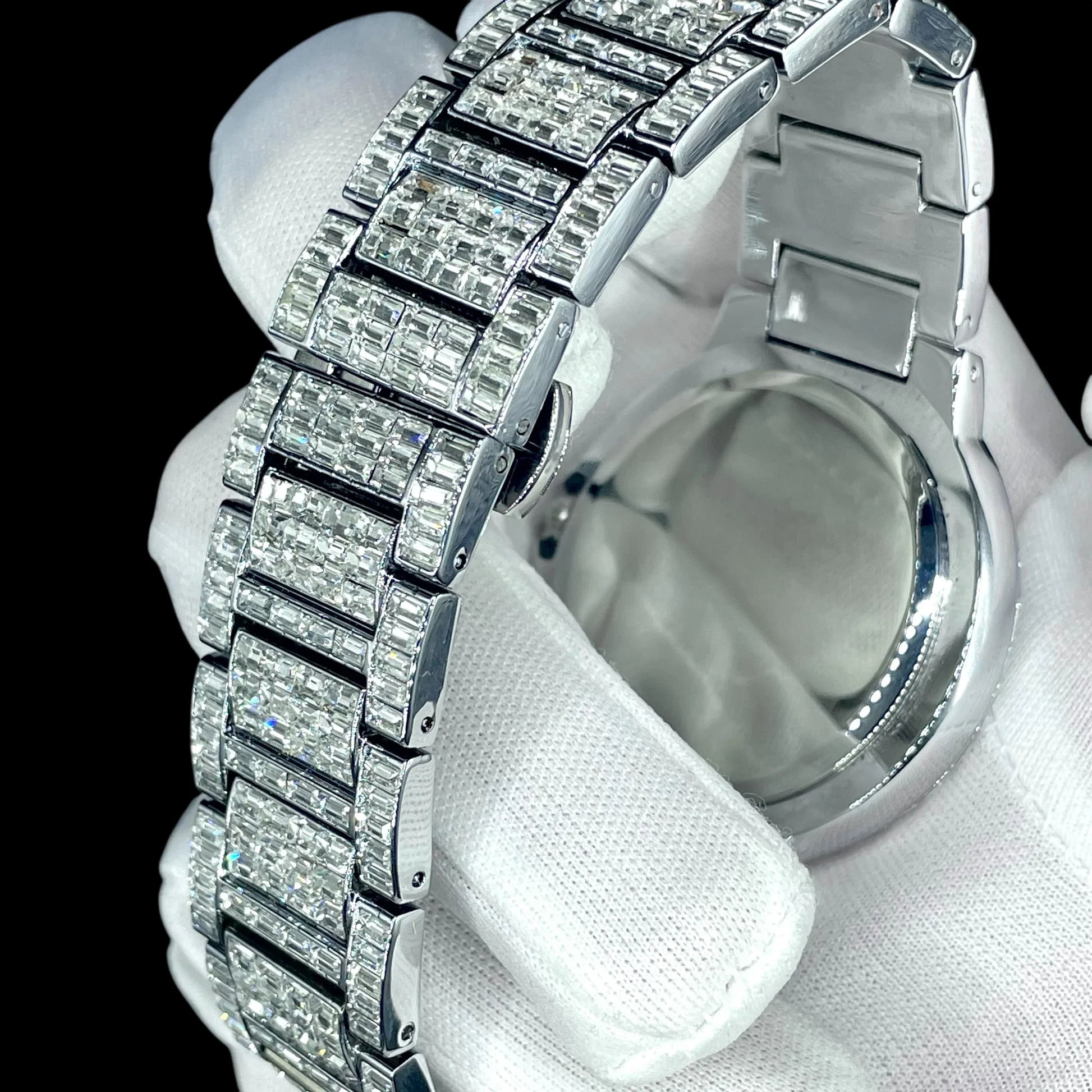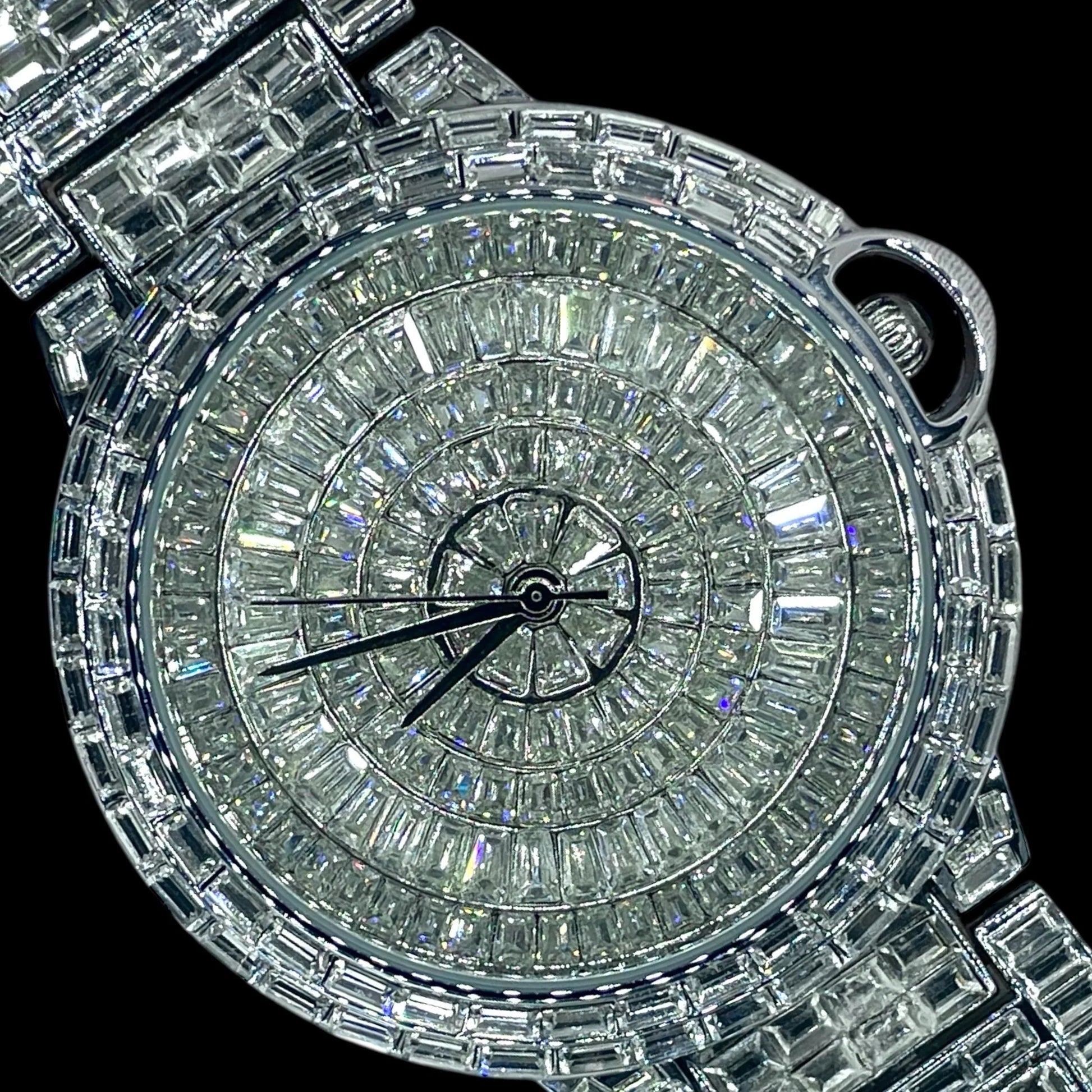 Elevate your wrist game with our 32mm Iced Out Men’s Watch, a bold expression of luxury and power. Designed for those who appreciate timeless shine, this masterpiece features a clean, minimalist dial encased in high-quality silver-tone stainless steel with a stunning iced-out bezel and band.