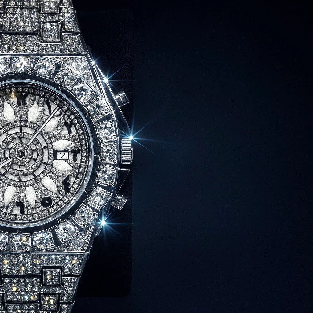 Each watch is meticulously assembled by artisans. Every screw, every gem is set by hand to ensure mechanical harmony and flawless aesthetics.